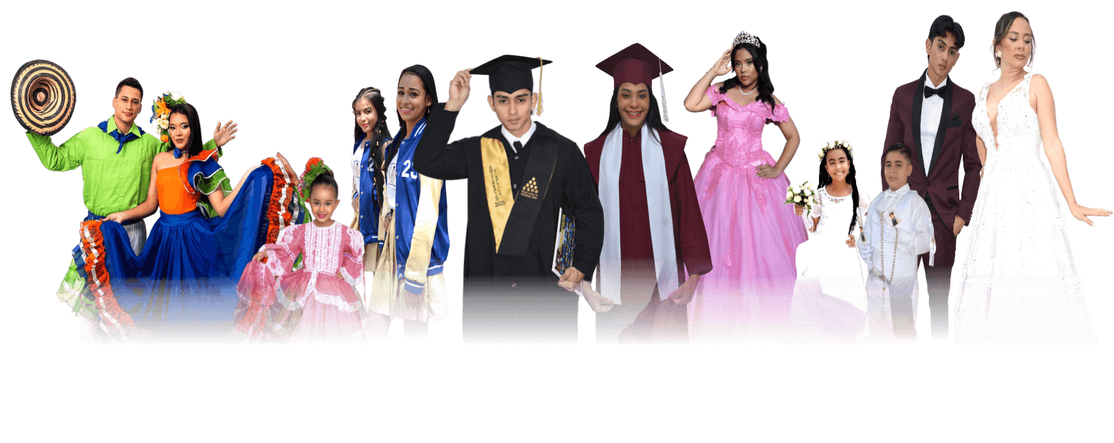 Disponemos de una amplia variedad de vestuario para diferentes ocasiones: vestidos de primera comunión, trajes folclóricos, vestidos para quinceañeras y vestimenta formal para caballeros. Todo nuestro vestuario está disponible para alquiler y se adapta a diferentes tallas y estilos.